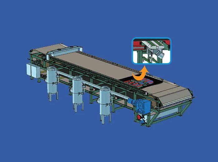 帶式真空過濾機是一種自動化程度較高的新型固液分離設備,該設備由機架、真空箱、驅動輥、壓布輥、糾偏輥、展布輥、料漿分布器、濾布糾偏裝置、濾布再生裝置和傳動裝置、濾布等部件組成,是充分利用物料重力和真空吸力實現(xiàn)固液分離的高效分離設備。