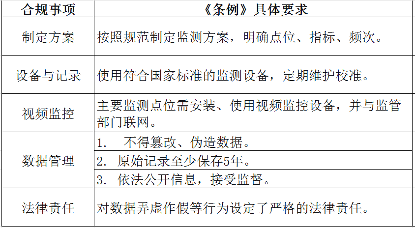對(duì)排污單位明確剛性義務(wù):需按規(guī)范開展自行監(jiān)測(cè),關(guān)鍵點(diǎn)位裝視頻并聯(lián)網(wǎng),使用國(guó)標(biāo)設(shè)備且定期校準(zhǔn),監(jiān)測(cè)數(shù)據(jù)實(shí)時(shí)上傳、留存?zhèn)洳椴⒁婪ü_,嚴(yán)禁造假;對(duì)第三方機(jī)構(gòu)要求資質(zhì)備案、執(zhí)業(yè)獨(dú)立,造假需承擔(dān)連帶責(zé)任。