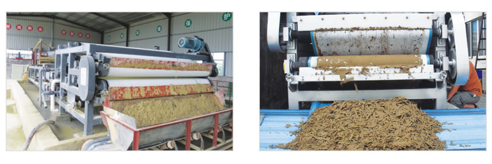 污泥脫離中壓區(qū)后就進(jìn)入高壓區(qū),污泥在此區(qū)內(nèi)受到1~3組對夾輾(或帶)擠壓,經(jīng)過擠壓后體積大幅收縮,污泥內(nèi)的間隙游離水被充分?jǐn)D出,此時,形成含固率較高的濾餅。重力濃縮脫水區(qū),污泥經(jīng)布料斗均勻送入濾網(wǎng),隨著濾帶向前運行,游離態(tài)的水在自重作用下通過足夠長的重力自由脫水區(qū)流入接水槽,重力脫水段也可以說是高度濃縮段,主要作用是脫去污泥中的大部分自由水及間隙水,合污泥的流動性減小,便于污泥在濾網(wǎng)上的較厚堆積,增強污泥結(jié)壓榨的承受力。